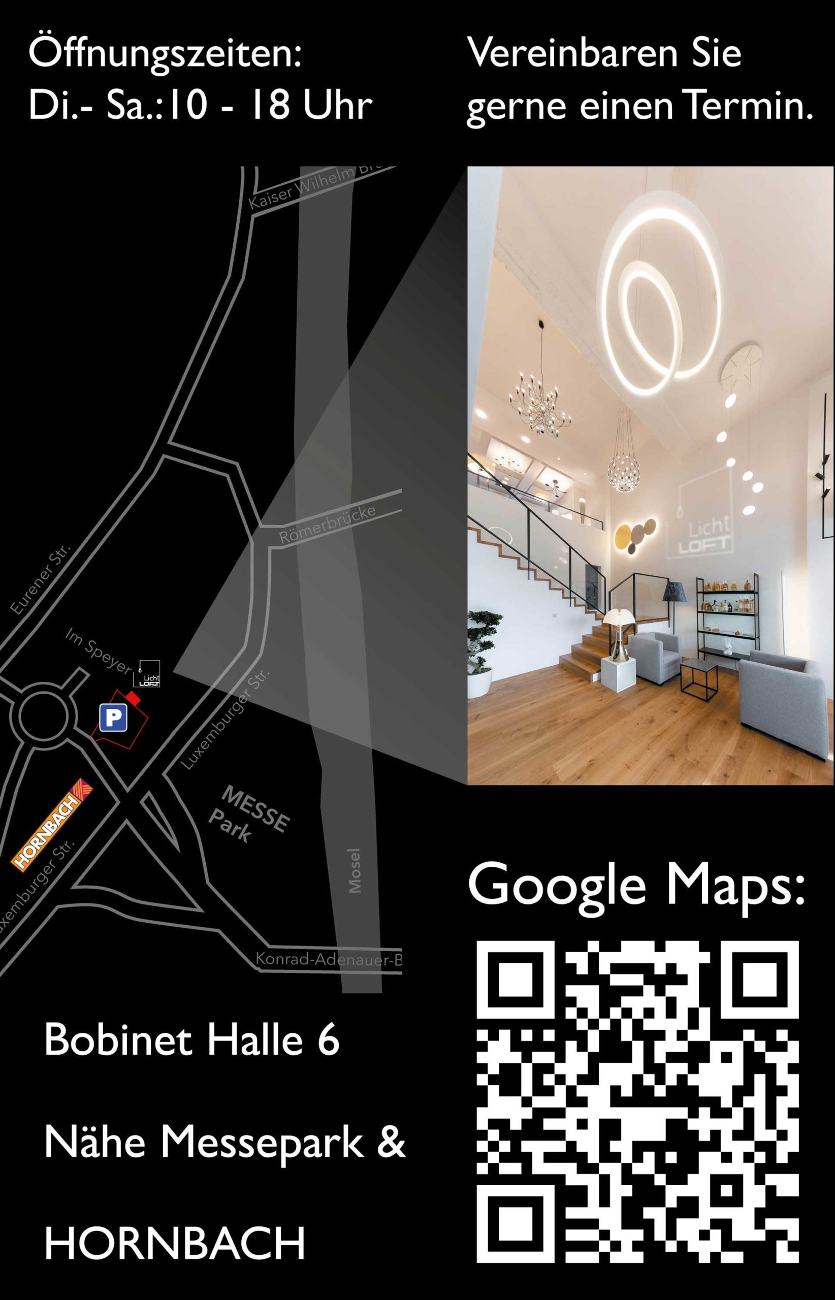 schon 2019 haben wir auf dem alten Bobinet-Gelände im Trierer Westen unseren Showroom und zweiten Standort, das LichtLoft by an/aus eröffnet.